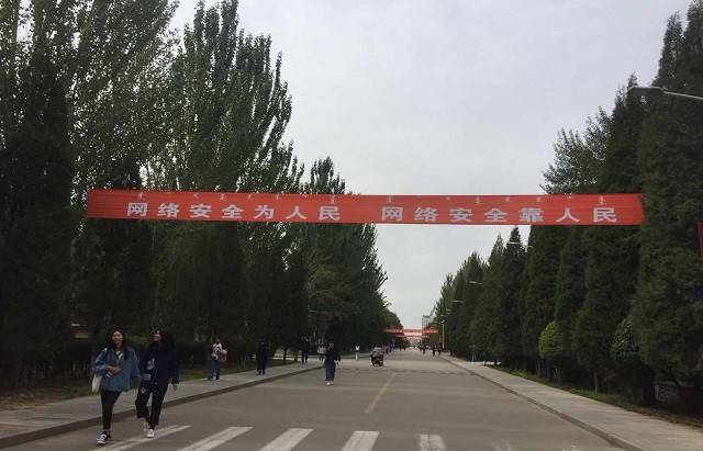 本次活动通过在校内主要道路悬挂标语横幅、道旗,张贴海报等较为醒目的方式启动国家网络安全宣传周。在户外单色屏幕滚动播放网络安全宣传活动相关标语。